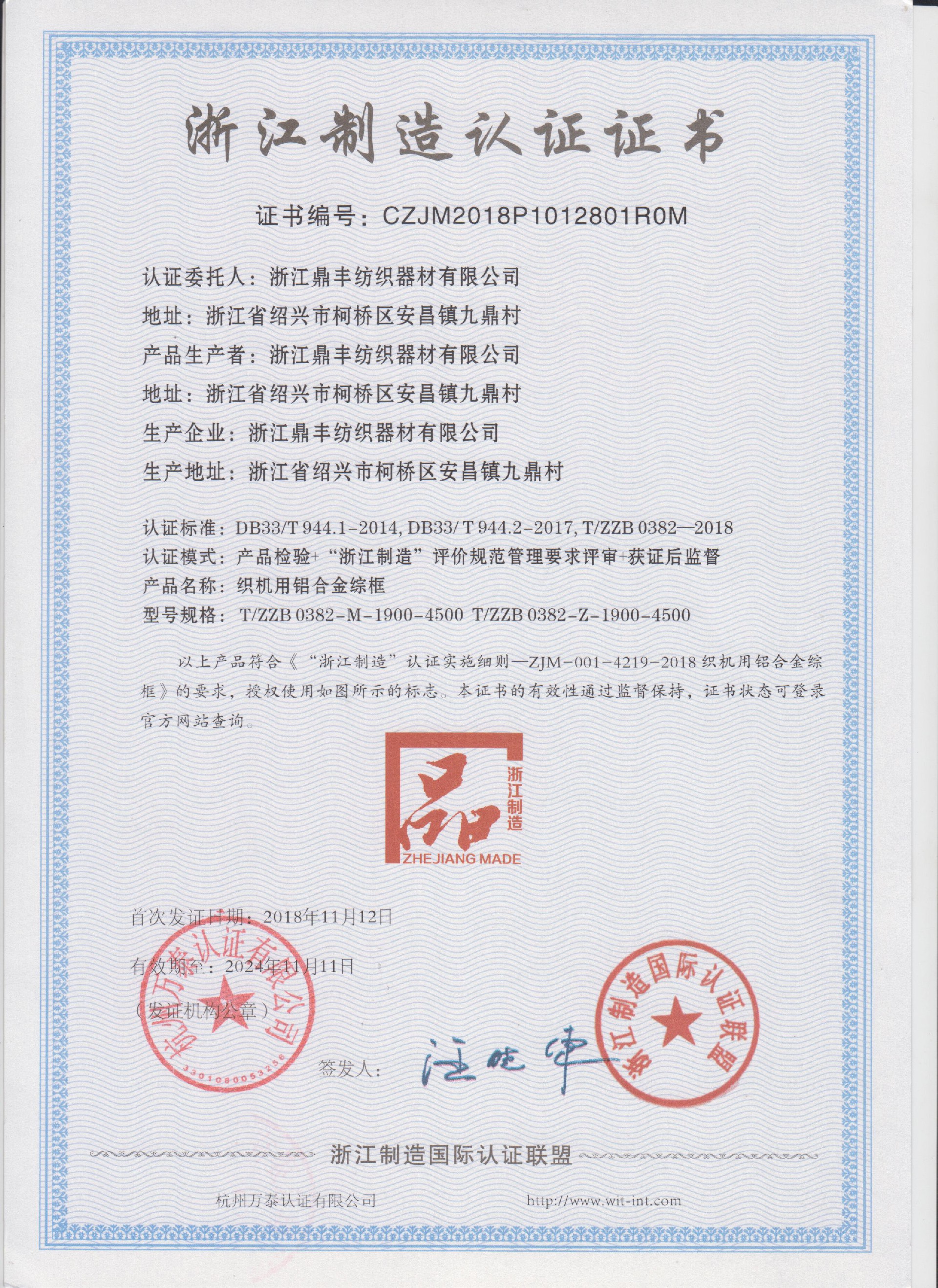 公司現(xiàn)有固定資產(chǎn)6000余萬元,員工300余人,現(xiàn)具有年產(chǎn)噴氣異型筘12萬米,劍桿筘32萬米,噴水筘5萬米,綜框20萬片,鋼片綜2億片,停經(jīng)片1.5億片, 織軸1.2萬套的生產(chǎn)能力。公司“越泉”商標(biāo)被評為“中國馳名商標(biāo)”。公司通過ISO9001 :2015國際質(zhì)量體系認(rèn)證,ISO14001:2015國際環(huán)境管理體系認(rèn)證,ISO45001:2018國際職業(yè)健康安全管理體系認(rèn)證,噴氣織機(jī)用鋼筘和織機(jī)用鋁合金綜框獲得“浙江制造”品牌認(rèn)證,公司擁有自營進(jìn)出口權(quán),產(chǎn)品暢銷全國并遠(yuǎn)銷印度、巴基斯坦、土耳其、埃及、哥倫比亞、意大利等國家和地區(qū)。